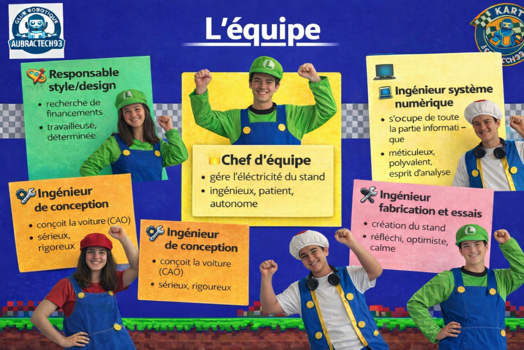 L’équipe est composée de 4 à 6 élèves, lycéens et/ou collégiens, filles et garçons, motivés et passionnés. Chaque membre a un rôle clé pour mener à bien notre projet Course en Cours :