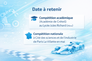 Encadrés par nos enseignants et soutenus par des ressources, matériels et partenariats, nous concevons, programmons et optimisons notre mini-voiture de course, alliant technique, innovation et performance.