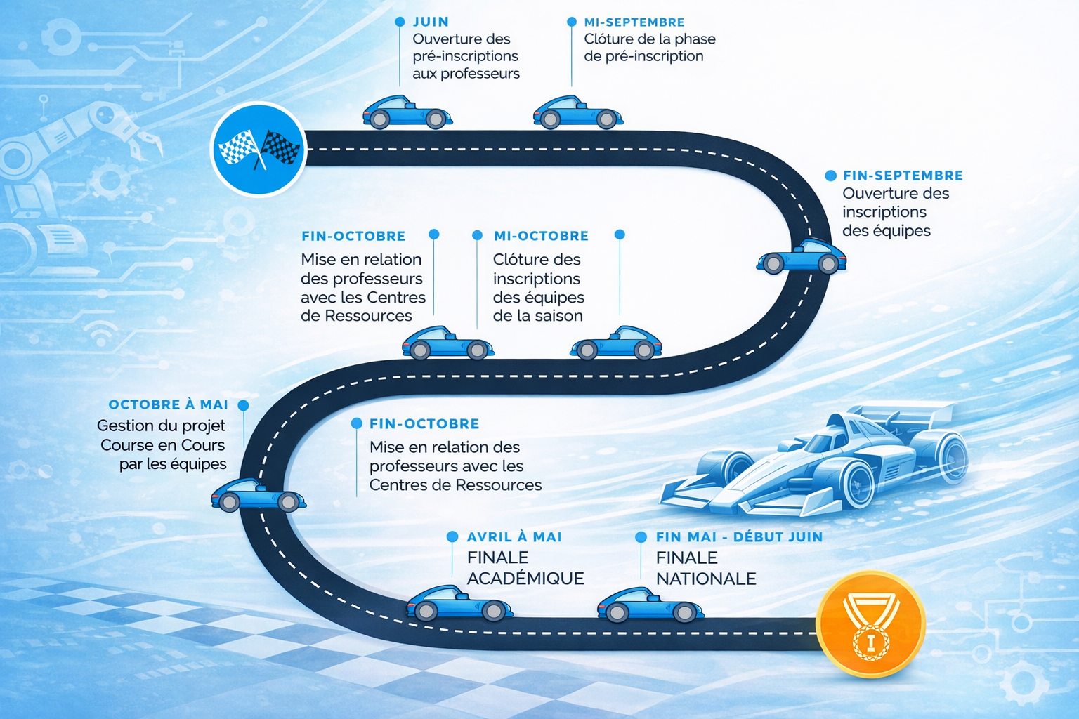 Course en Cours plonge collégiens et lycéens dans un projet d’ingénierie concret : concevoir et programmer leur mini-voiture de course.